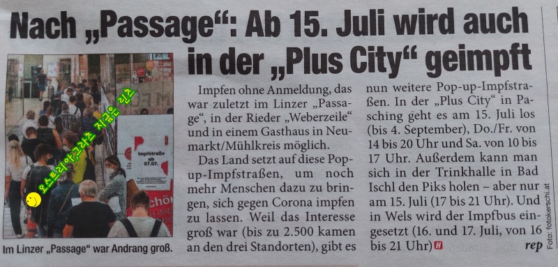 시누이가 비엔나에서 코로나 백신주사를