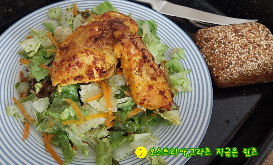 업어다가 양념해서 구워 가벼운 치킨샐러드를