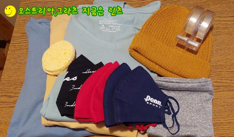 긴팔 면셔츠 3개, 천 마스크 6개,