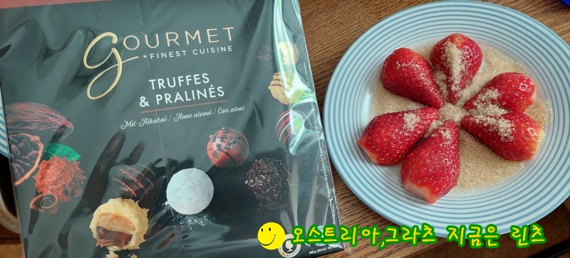 딸기는 오전에 장보러 갔다가 사 들고 왔죠.