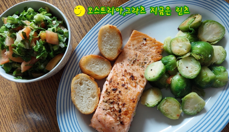연어와 방울 양배추,
