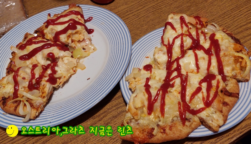 엊그제 점심으로는 냉동 피자 위에