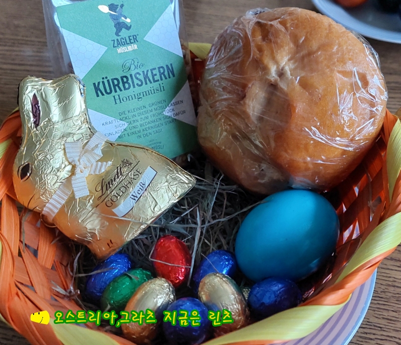부활절 바구니에 들어있던