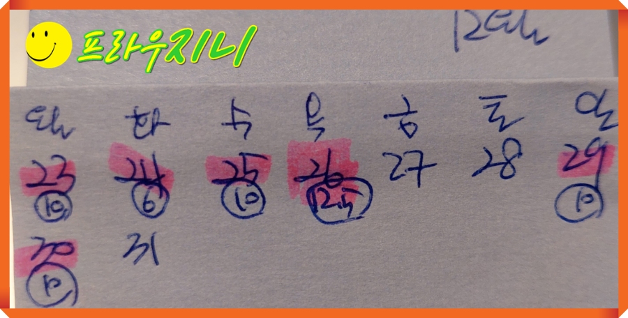 나는 12월 23일부터 연속4일.